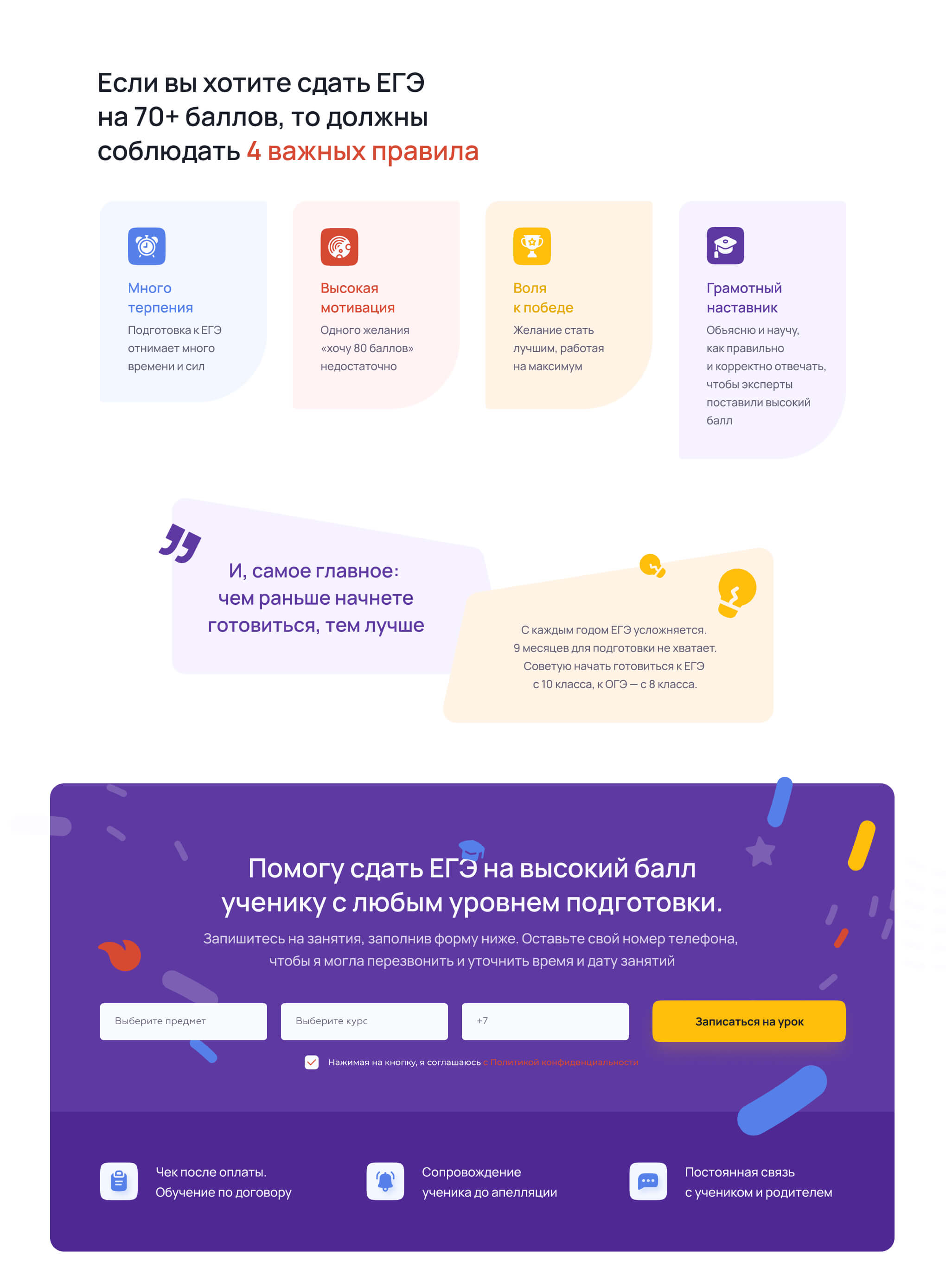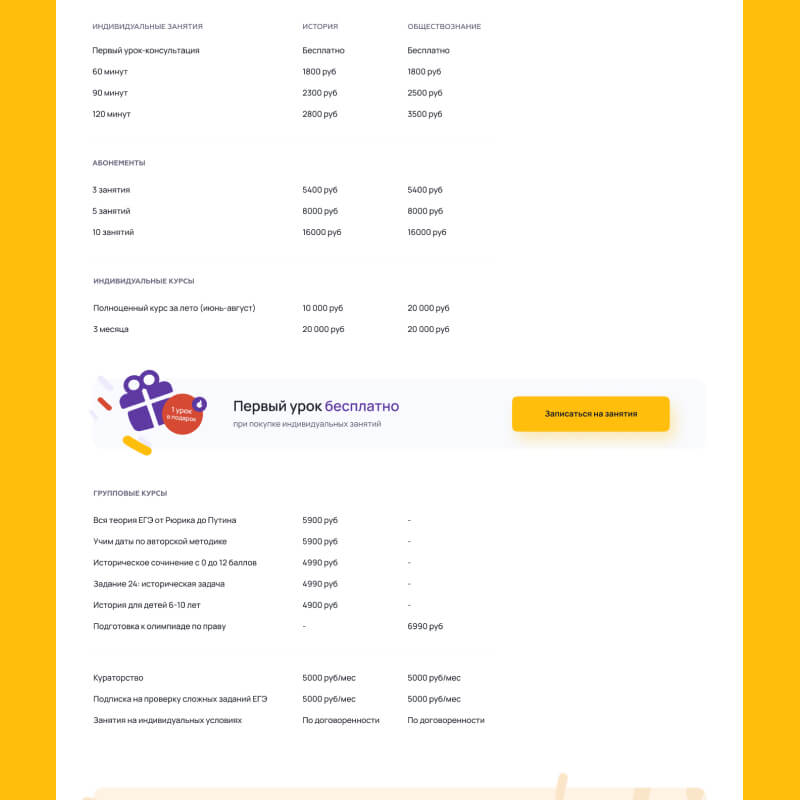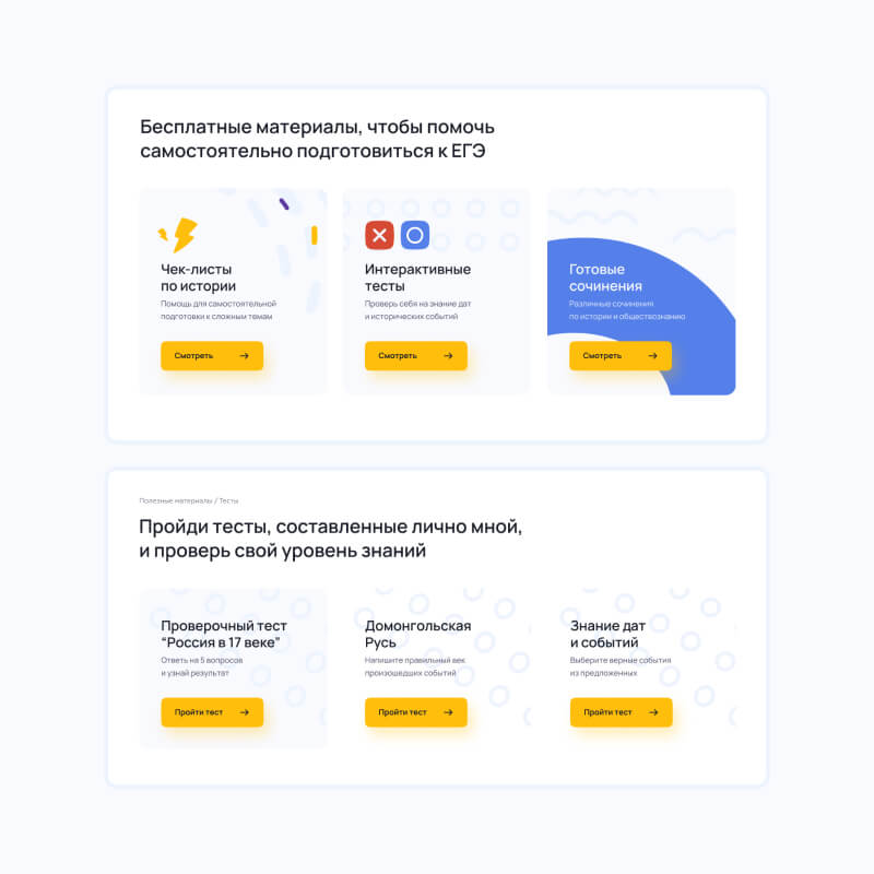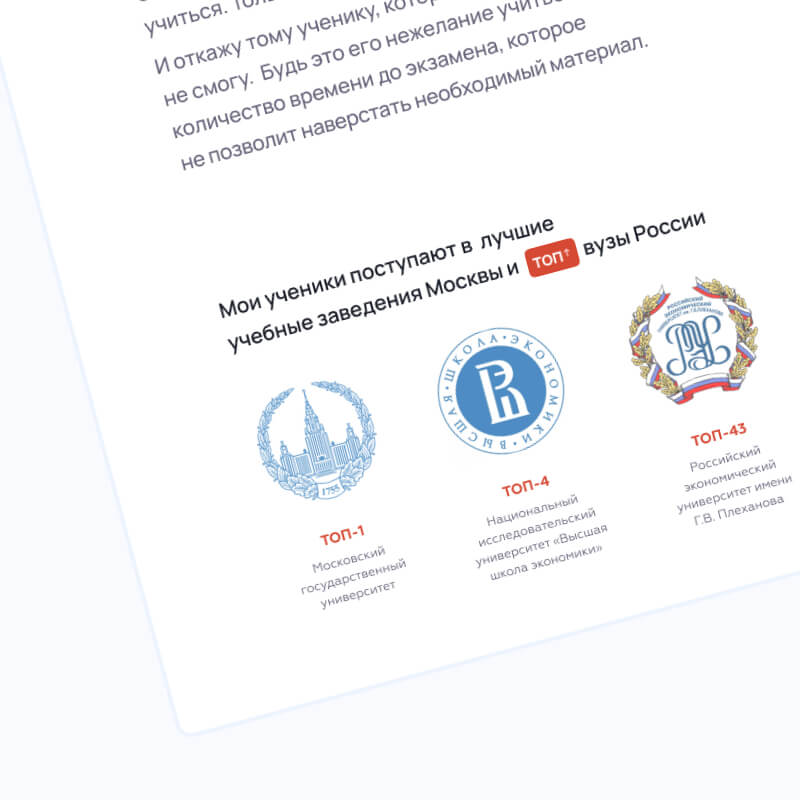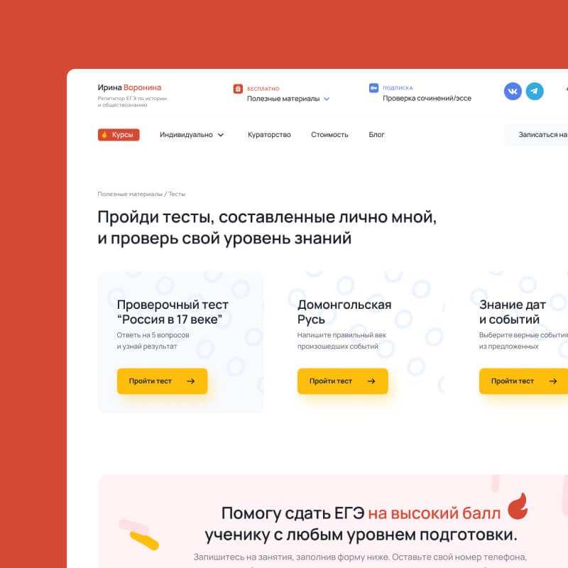Также необходимо было учитывать, что сайт должен нести функцию площадки, где ученик будет самостоятельно работать с контентом от репетитора.