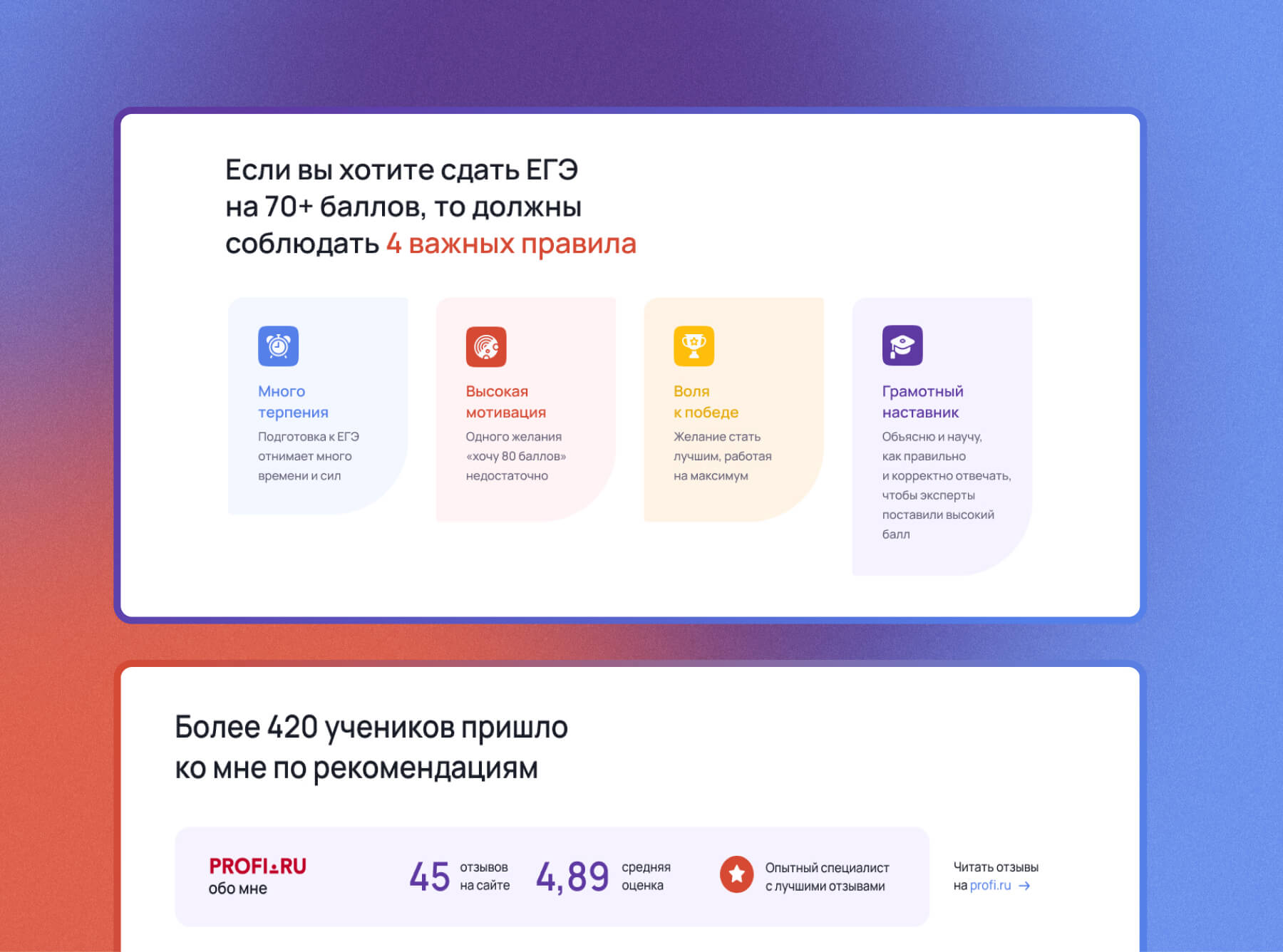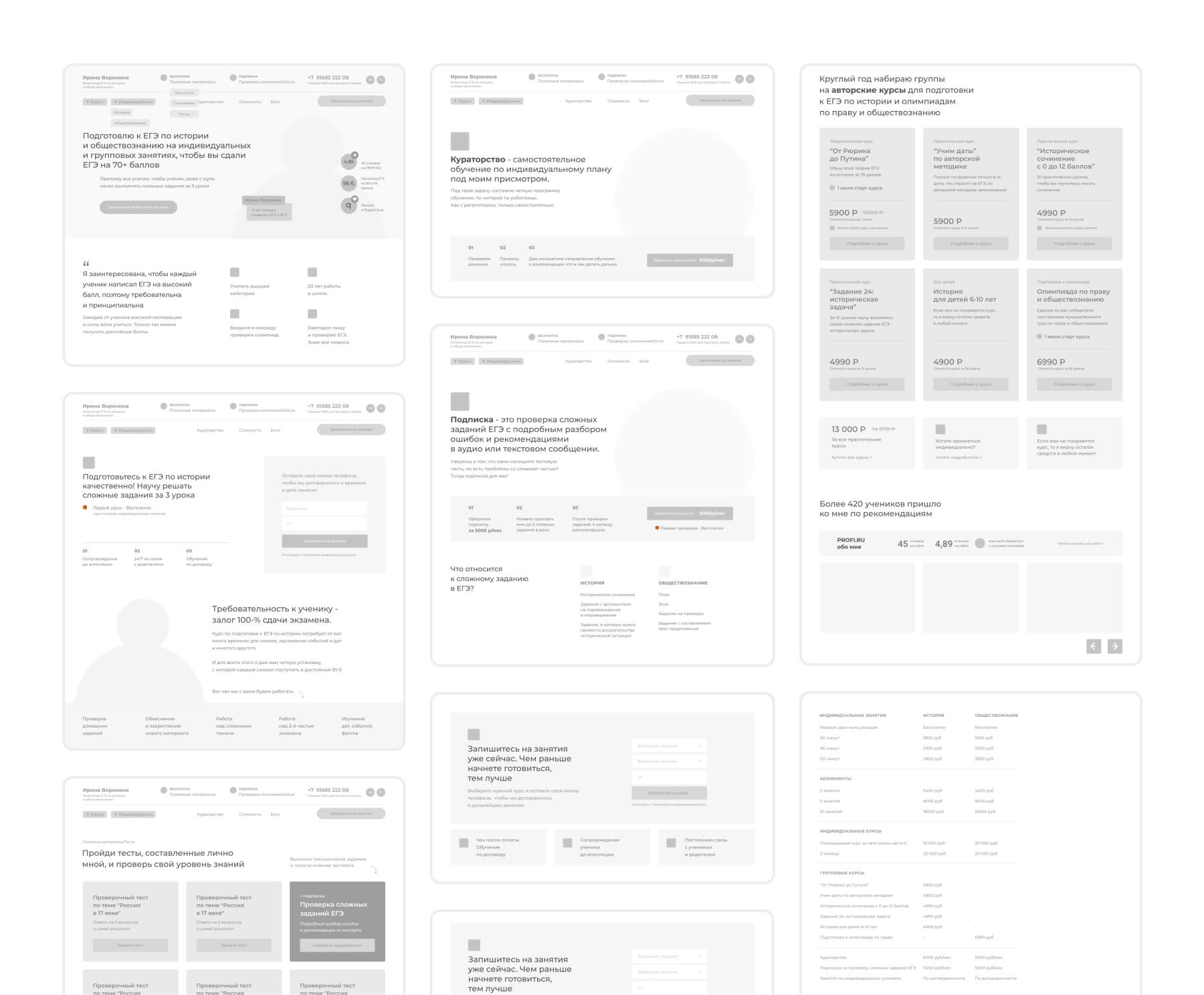сайт для репетитора. Продумать структуру и необходимые моменты. Подготовить прототипы получившихся страниц, написать тексты, проработав боли.