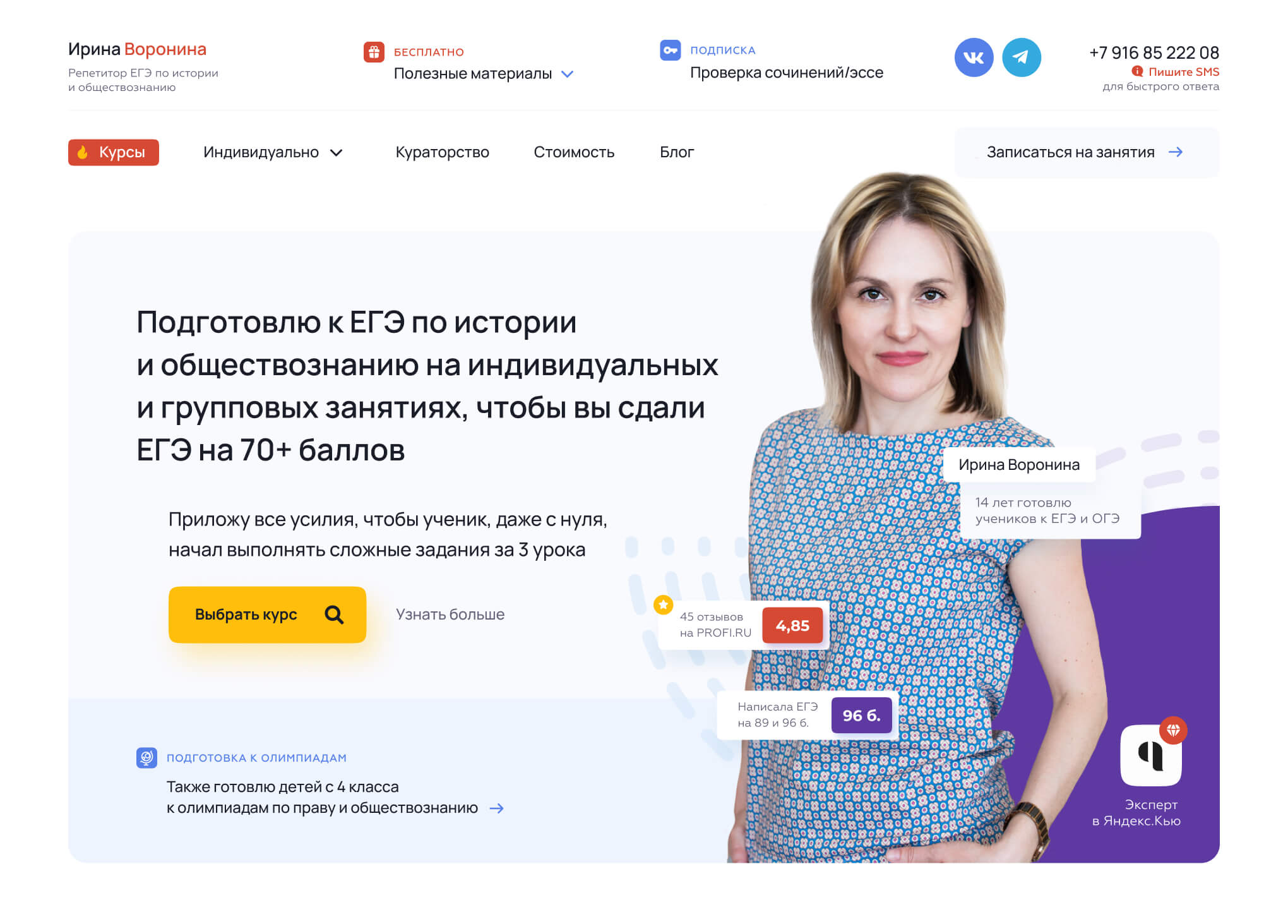 Ирина Воронина — репетитор ЕГЭ по обществознанию и истории